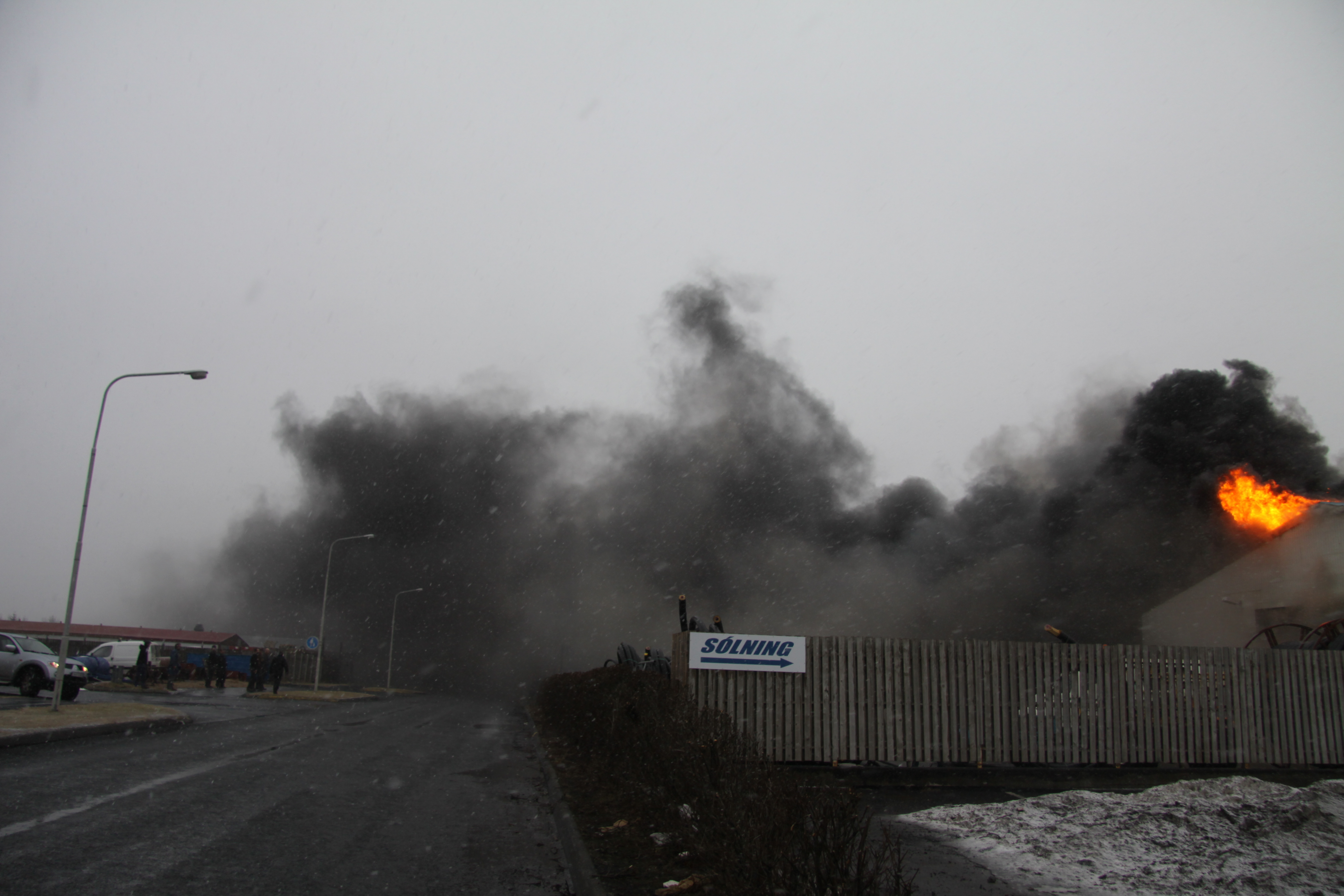 „Við sáum út um gluggann í hádeginu að einhvers staðar var kviknað í og kolsvartan reykinn lagði sem betur fer ekki yfir okkur en við fórum samt að fylgjast með. Hingað komu menn og slökktu á loftræstikerfinu og aðeins seinna kom lögreglan og bað okkur að vera í viðbragðsstöðu því spáð var að vindátt breyttist á næsta klukkutíma og þá yrði húsið rýmt og við send á öruggan stað,“ segir Kristín.