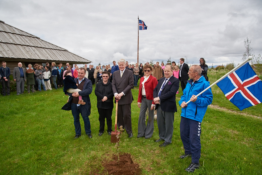 Forsetahjónin hittu íbúa Sólheima að máli, fengu fræðslu um sögu staðarins, skoðuðu sig um á vinnustofunum og gróðursettu tré við Sólheimakirkju.