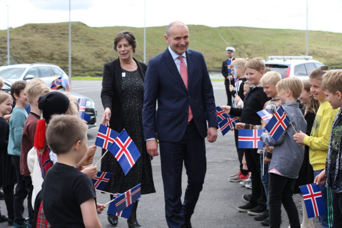 Í lok heimsóknarinnar bauð sveitarfélagið til samkomu í félagsheimilinu Kirkjuhvoli en þar var hátíðardagskrá í tengslum við 50 ára afmæli Kirkjubæjarskóla.