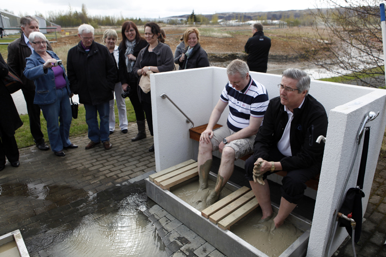 Hvergerðingar opnuðu nýja aðstöðu til vatns- og leirfótabaða í Hveragarðinum í gær. Þar má líka sjóða egg og baka brauð.