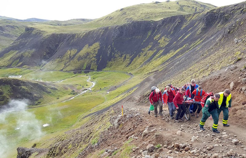 Björgunaraðilar komust fljótt á vettvang og báru viðkomandi að bifreiðastæði í Reykjadal þar sem sjúkrabifreið var staðsett.