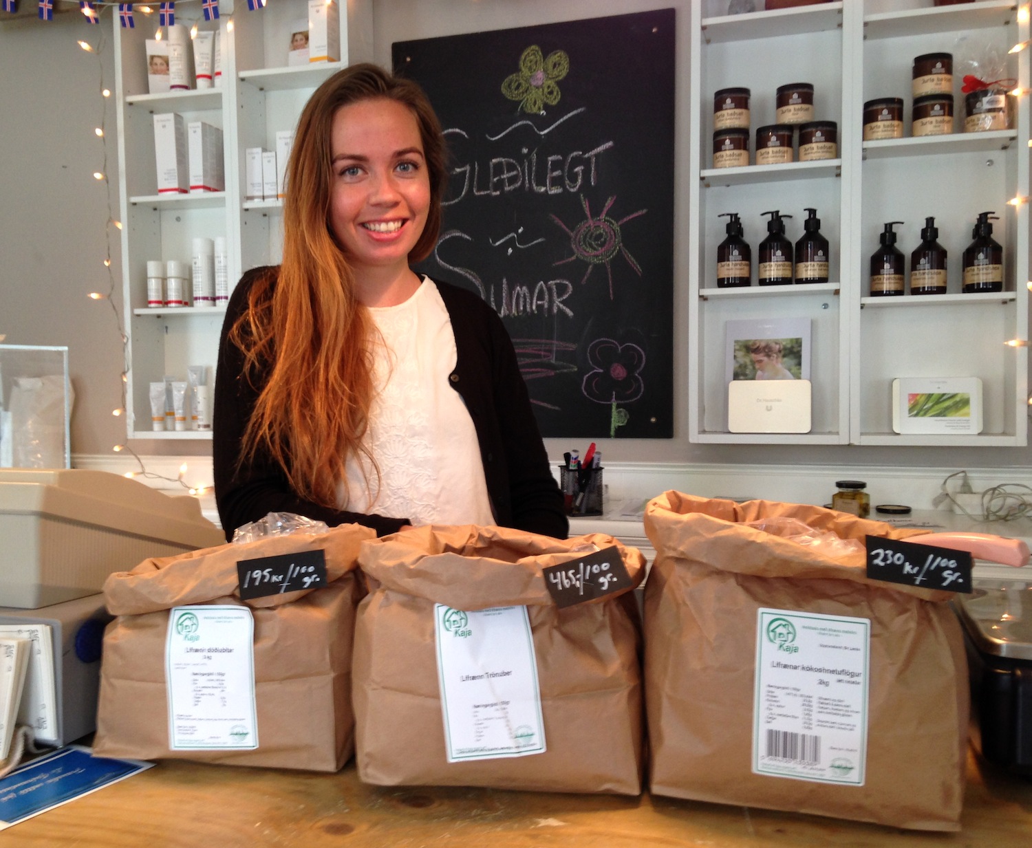 „Okkur finnst frábært að geta boðið upp á matvöru í lausu, bæði er það hagstæðara og við spörum plastið,“ segir Dagmar Una Ólafsdóttir, annar eigandi verslunarinnar Fjallkonunnar á Selfossi.