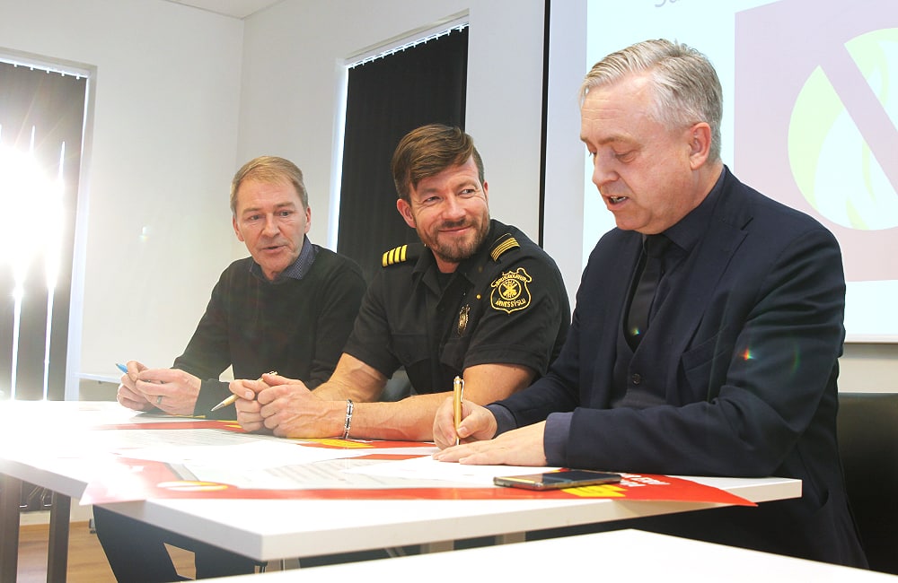 Það voru þeir Björn Karlson, forstjóri Mannvirkjastofnunar, Garðar H. Guðjónsson, verkefnastjóri Eldvarnabandalagsins og Pétur Pétursson, slökkviliðsstjóri Brunavarna Árnessýslu, sem skrifuðu undir samstarfssamninginn.