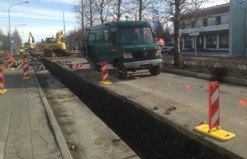 Grafinn verður um 1,3 m djúpur lagnaskurður í bílastæðum meðfram Austurvegi en gangstéttinni við Austurveg verður ekki raskað og helst núverandi gönguleið því greið,“ segir Ásta Stefánsdóttir, framkvæmdastjóri Sveitarfélagsins Árborgar.
