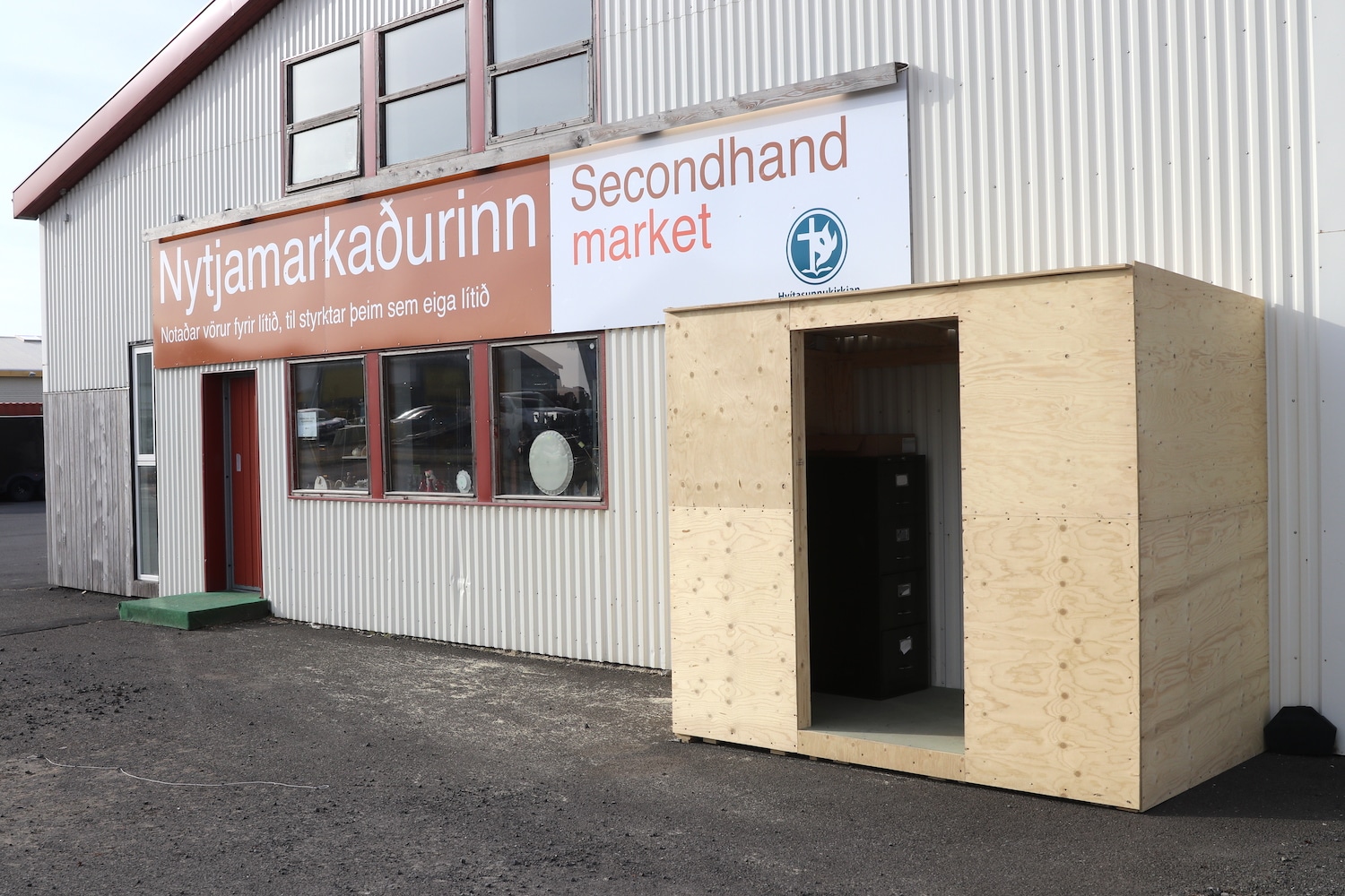 Í framhaldinu settu þær stöllur inn auglýsingu á Facebook hópinn Íbúar á Selfossi og óskuðum eftir smið til að hanna og smíða skýlið. „Helgi Haraldsson smiður var ekki lengi að taka þetta að sér og var skýlið tilbúið nokkrum dögum seinna. Ingvar í Nytjamarkaðnum fékk svo Gunnar Þór rafvirkja til að tengja rafmagnið í skýlið. Ísskápinn og skjalaskápinn fengum við svo gefins í gegnum Facebook og sá sendibílaþjónustan keyrsla.is um að koma skjalaskápnum til okkar úr Reykjavík á Selfoss.“