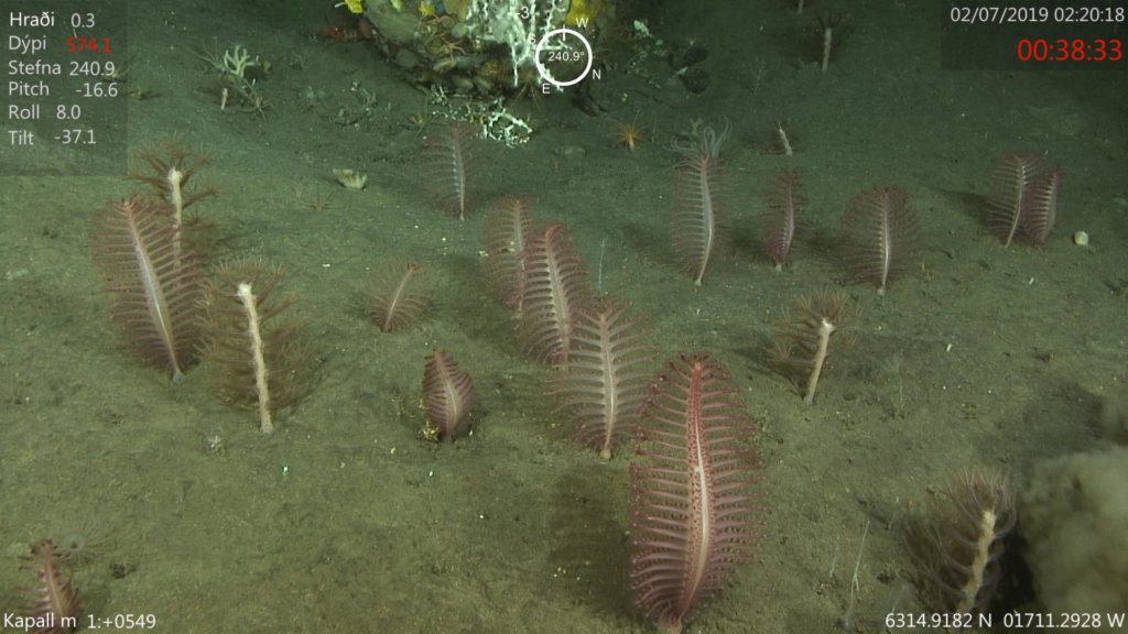 Ýmislegt áhugavert kom fram á neðansjávarmyndum í leiðangrinum en á Kötlugrunni sá leiðangursfólkið dýr sem ekki hefur sést áður og ekki hefur tekist að finna út hvaða dýr þetta er í raun.