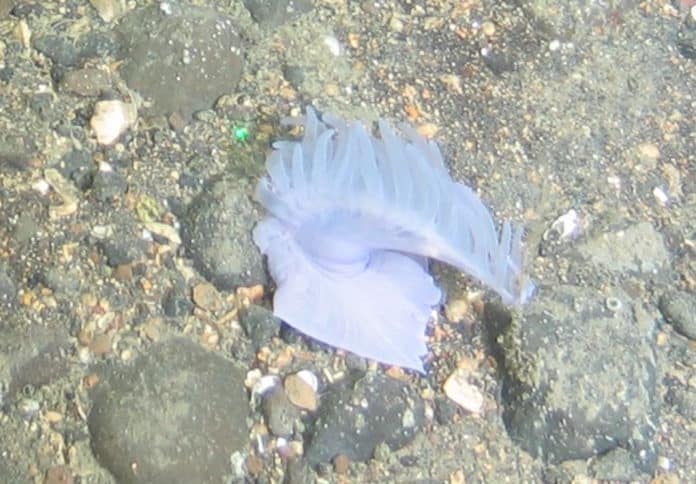 Liturinn er ljósfjólublár og dýrið er með tvær raðir af öngum og ferkantaðan fót. Það eru þekktar yfir 3.000 tegundir af botndýrum í kringum Ísland en aðeins hluti þeirra hefur verið myndaður hingað til. Hvort þetta dýr tilheyri einhverri af þessum þekktu tegundum eða hvort um nýja tegund sé að ræða við Ísland er ekki vitað.
