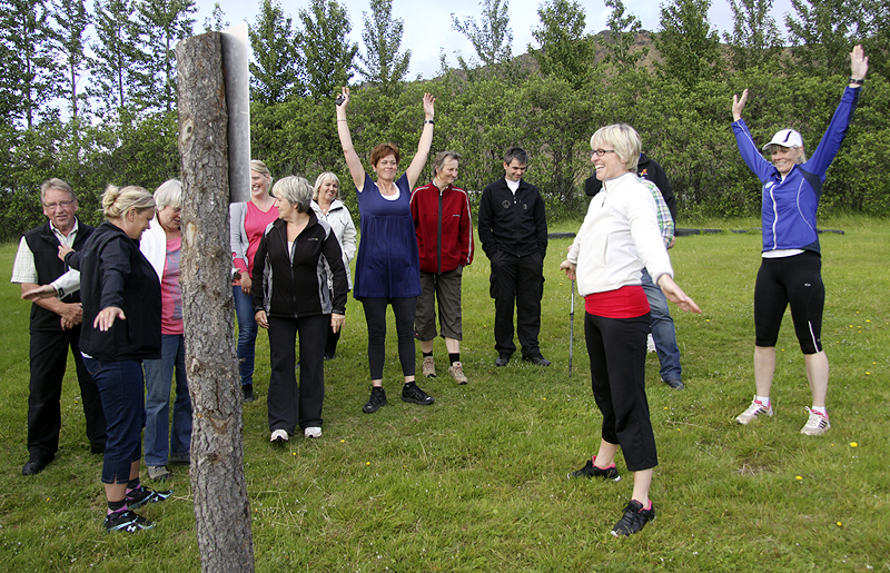 Heilsustígurinn við Laugaskarð, 2,67 km löng gönguleið með æfingastöðvum, var formlega vígður við upphaf Blómstrandi daga í Hveragerði í gær.