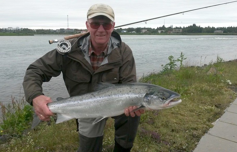 Fyrsti Ölfusárlax sumarsins er kominn á land en Sumarliði Guðbjartsson landaði 85 sm hrygnu á miðsvæðinu um klukkan 18 í kvöld.