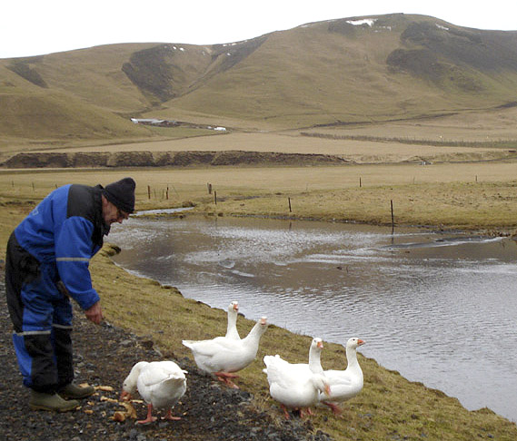 FréttirGæsirnar þekkja bílinn 1. janúar 2011 17:50Pálmi Andrésson í Kerlingardal notaði blíðviðrið á nýjársdag til þess að færa aligæsunum sínum brauð.Að sögn Pálma þekkja þær bílinn hans og koma strax til hans þegar hann stoppar við lónin sem þær dvelja oftast á.