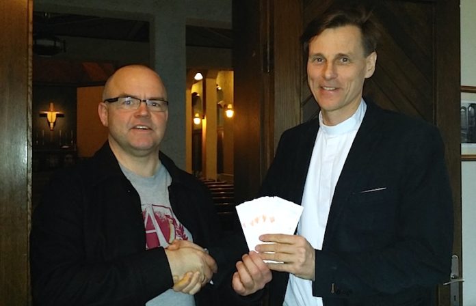 Sr. Axel Árnason, settur prestur í Selfosskirkju, tók við miðunum fyrir hönd sjóðsins en Sjóðurinn góði aðstoðar þá sem höllum fæti standa í aðdraganda jóla.