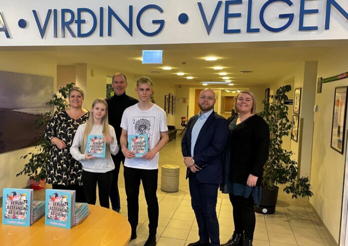 Skemmst er frá því að segja að fjölskyldan í Hafnarnesi-Veri tók vel í hugmyndina og í síðustu viku komu Katrín og Ólafur Hannesarbörn í heimsókn í skólann og afhentu bókina að gjöf til allra nemenda á unglingastigi. Skólinn hafði einnig samband við Þorgrím, sem var ekki lengi að bregðast við og kom í skólann og ritaði persónulega kveðju inni í hverja einustu bók.