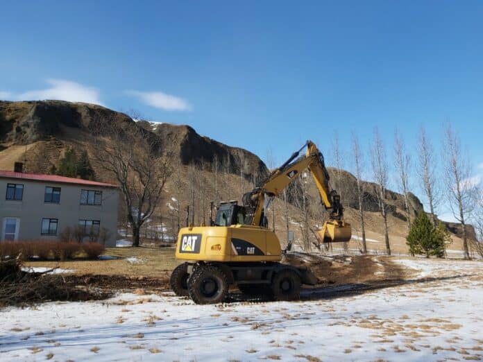 Verktakafyrirtækið Framrás í Vík í Mýrdal hófst handa við gatnagerð á lóð læknisbústaðarins á Kirkjubæjarklaustri rétt fyrir páska.
