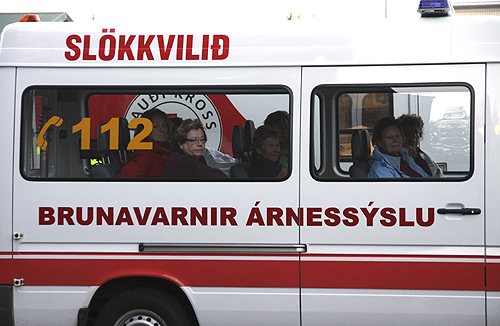 Húsnæði Rauða krossins á Selfossi var opnað og fólkið dvaldi þar á meðan það beið. Sumir höfðu yfirgefið hótelið á náttfötum einum fata en sem betur fer var veður milt á þessari stystu nótt ársins og engum varð meint af.