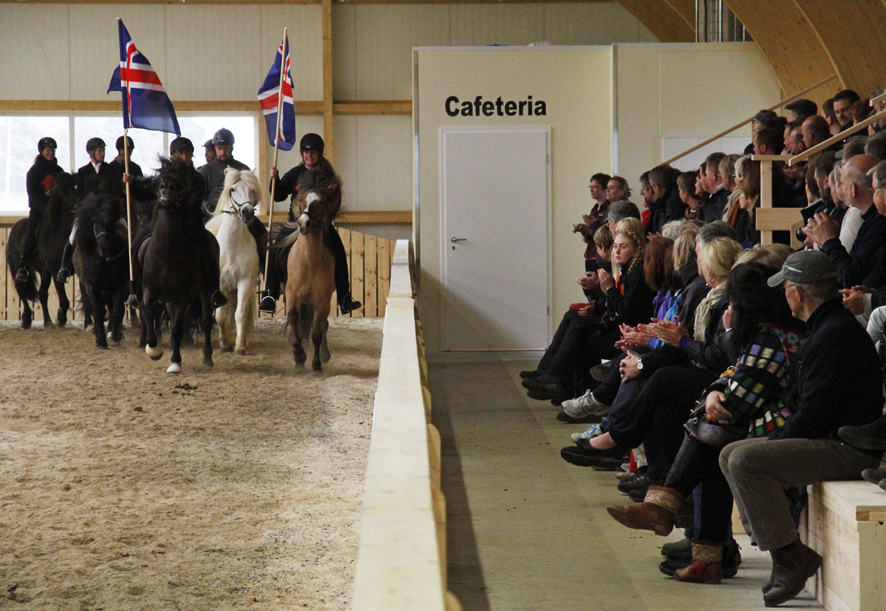 Vígslan í dag hófst á stuttri kynningu á fyrirtækinu og þar á eftir stóðu starfsmenn og velunnarar fyrirtækisins að glæsilegri hestasýningu.