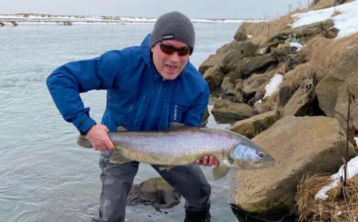 Stangaveiðitímabilið hófst að venju í dag og var fyrsti silungur ársins í Ytri-Rangá heldur betur glæsilegur.