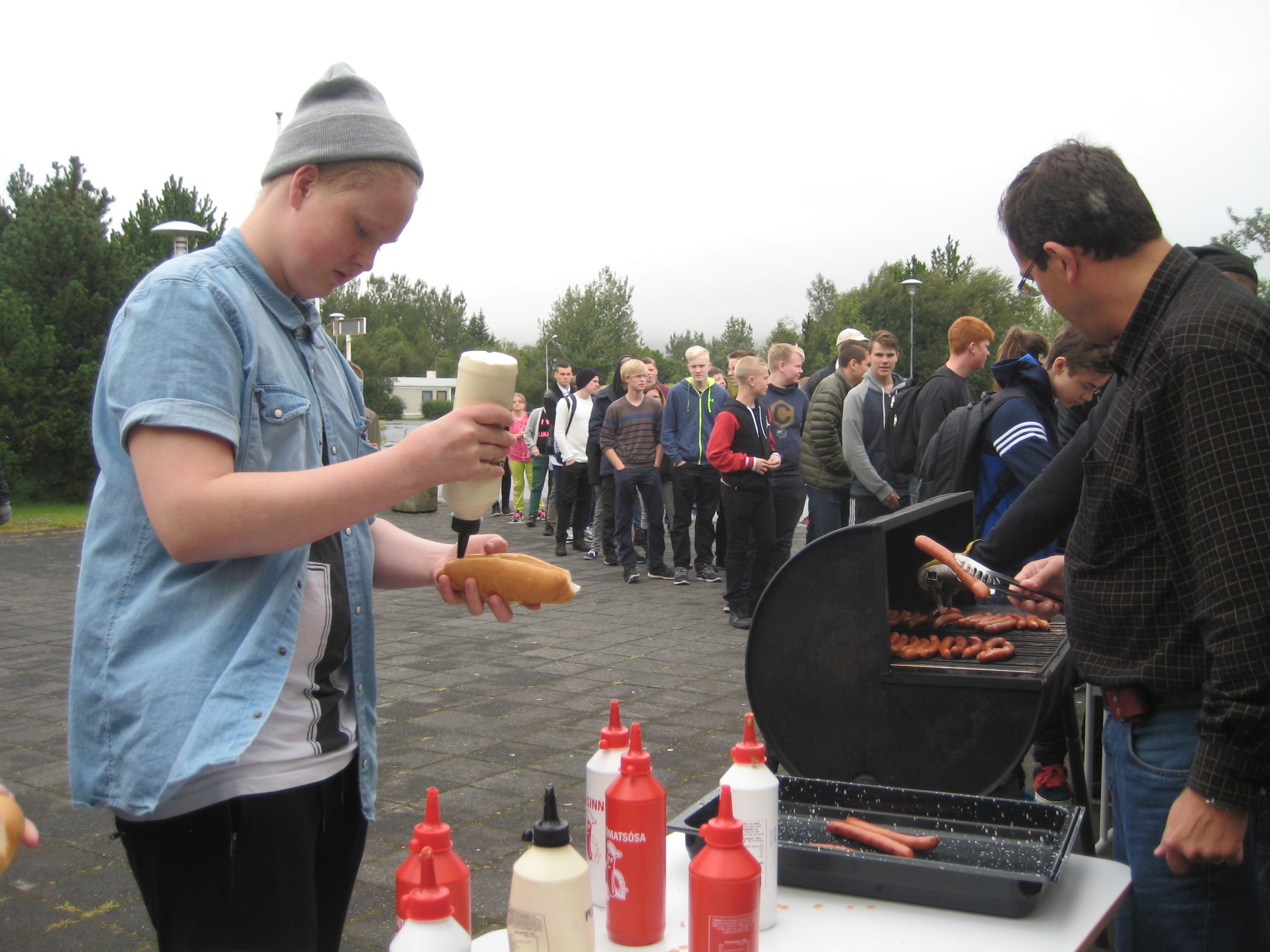 Því næst steig uppistandarinn og gleðigjafinn Þorsteinn Guðmundsson á svið og kitlaði hláturtaugar nemenda og starfsfólks. Eftir skemmtunina var boðið upp á grillaðar pylsur að góðum sið, en matreiðslan var í höndum starfsmanna.