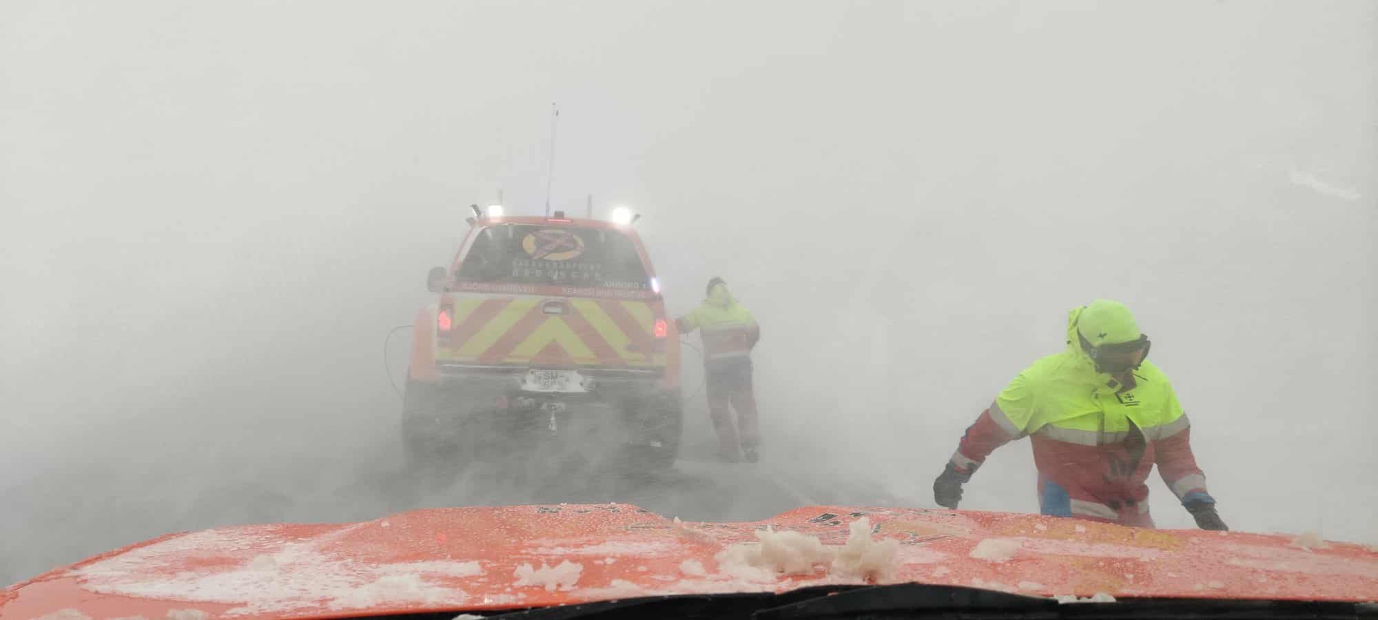 Fólkið var í sambandi við Neyðarlínu en gat ekki gert sér grein fyrir hvar það var staðsett. Undir kvöld komust annar hópurinn inn á hótel í Reynisfjöru og hinn hópurinn inn á nærliggjandi sveitabæ.