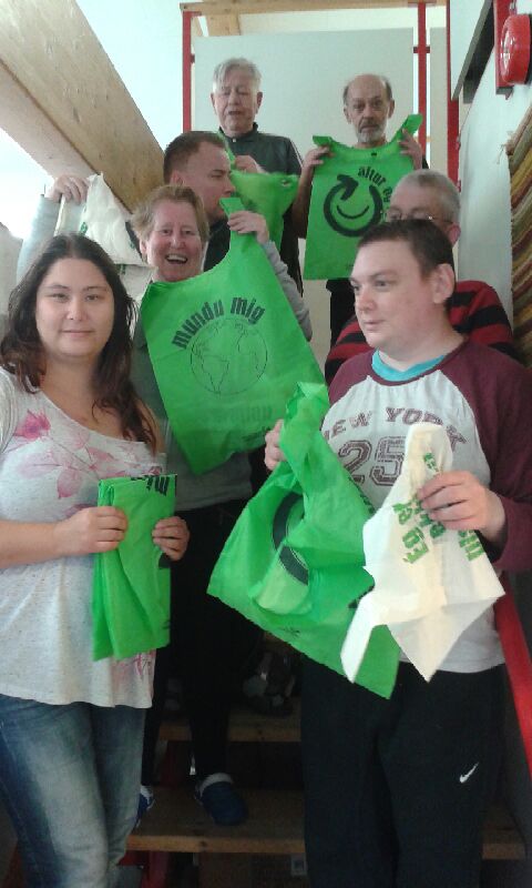 Hjá VISS er glæsileg verslun þar sem afraksturinn er seldur og þar eru ekki notaðir plastpokar, heldur pokar sem starfsfólkið saumar sjálft úr efnisbútum undir vörurnar. Íslenska gámafélagið ákvað því að leggja þessu lið og kom með fjölnota poka handa öllu starfsfólki VISS og svo umhverfisvæna maís burðarpoka.