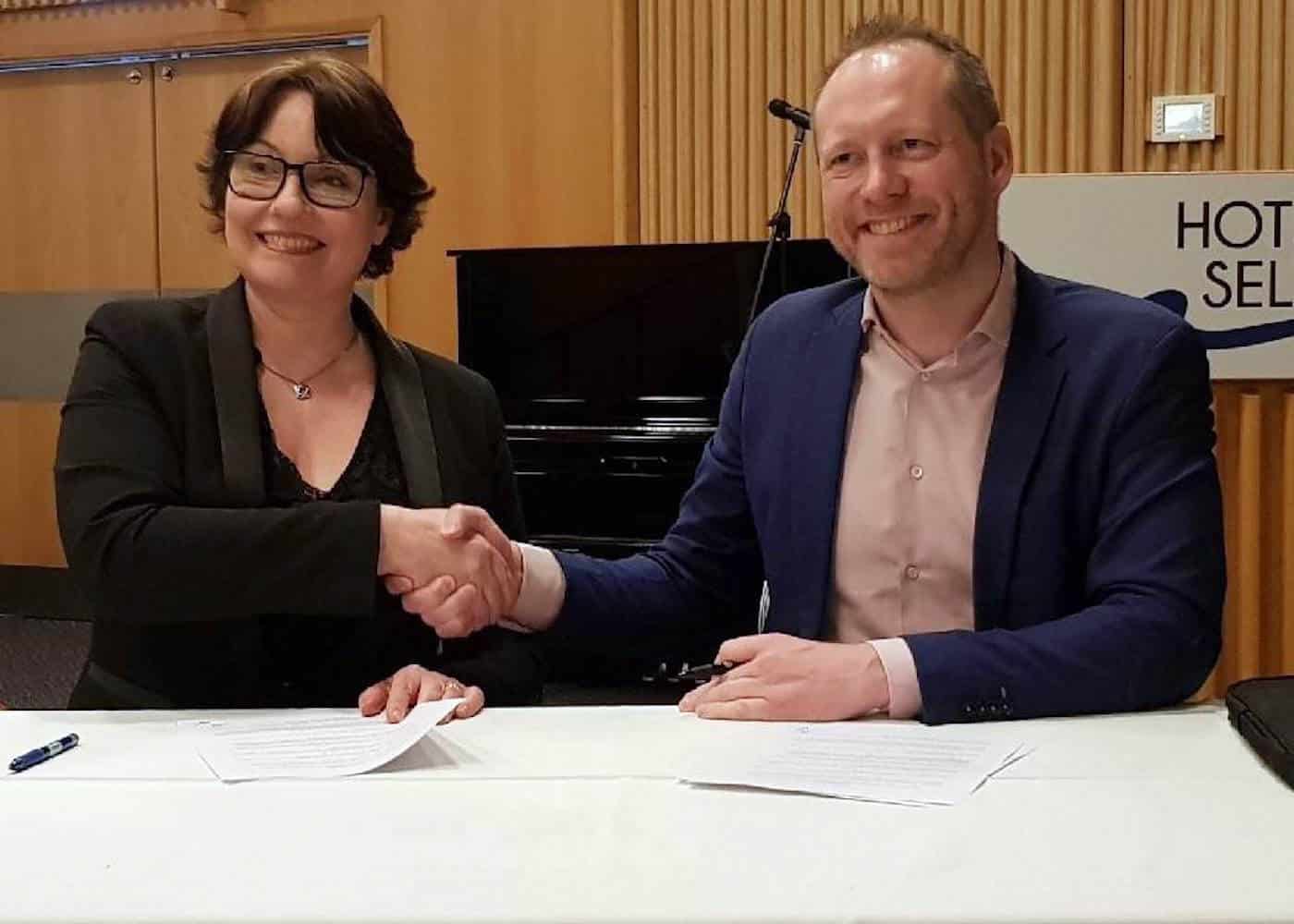 Guðmundur Ingi Guðbrandsson, umhverfis- og auðlindaráðherra, og Eva Björk Harðardóttir, formaður Sambands sunnlenskra sveitarfélaga, skrifuðu í dag undir samning á Selfossi um greiningu tækifæra og áhrifa friðlýstra svæða á Suðurlandi.