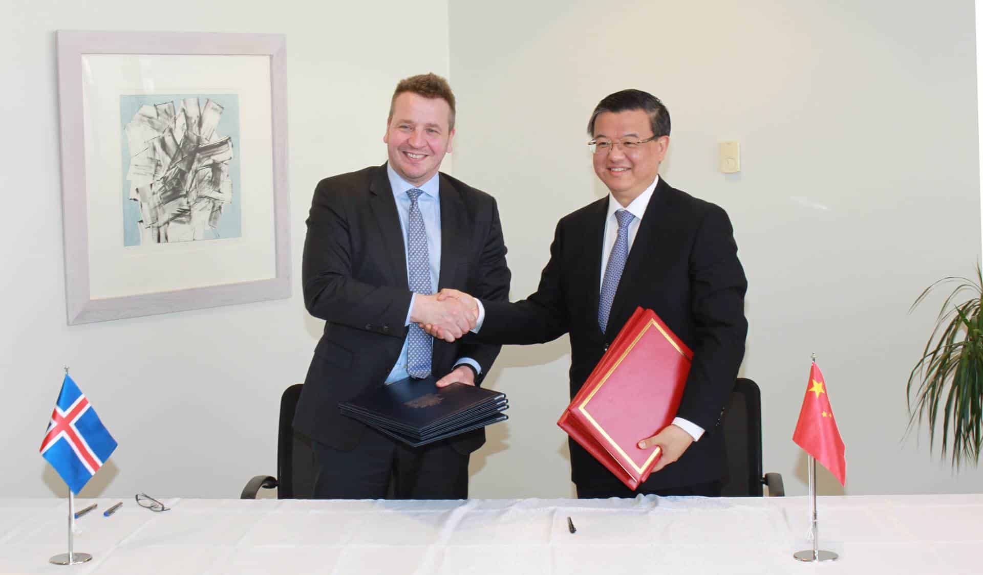 Guðlaugur Þór Þórðarson utanríkisráðherra og Ni Yuefeng, tollamálaráðherra Kína, undirrituðu í dag þrjár nýjar bókanir við fríverslunarsamning Íslands og Kína. Undirritunin fór fram í höfuðstöðvum Matvælastofnunar á Selfossi.