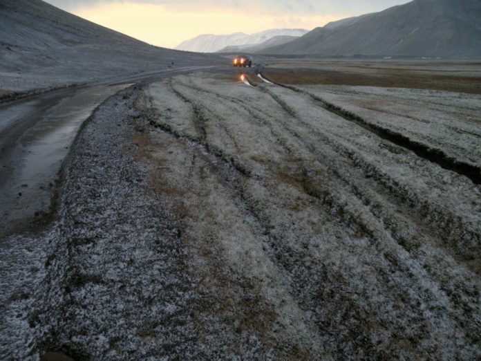 Starfmenn Útivistar voru þar á ferð um síðustu helgi til að vinna í skálanum og var brugðið þegar þeir sáu samfelld för eftir utanvegaakstur á um 6 km kafla.
