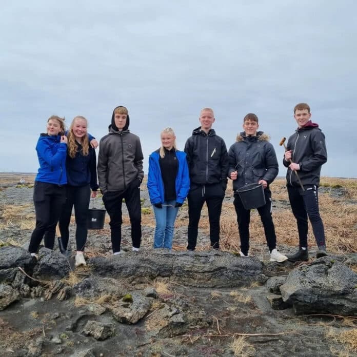 Um 200 nemendur frá Fjölbrautaskóla Suðurlands unnu að því á Degi jarðar í apríl síðastliðnum að setja niður aspargræðlinga á Hafnarsandi.