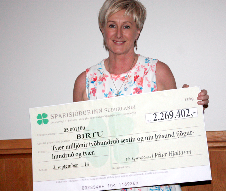 Hún afhenti fyrir skömmu rúmlega 2,2 milljónir króna, sem hún safnaði í kærleiksgöngu sinni eða áheitagöngu 21. maí síðastliðinn. Það var Birta, Landssamtök foreldra barna og ungmenna sem látist hafa fyrirvaralaust, sem fékk ágóðann.