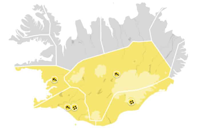 Veðurstofan hefur gefið út gula viðvörun sem gildir fyrir Suðurland frá miðnætti til klukkan 6 í fyrramálið.