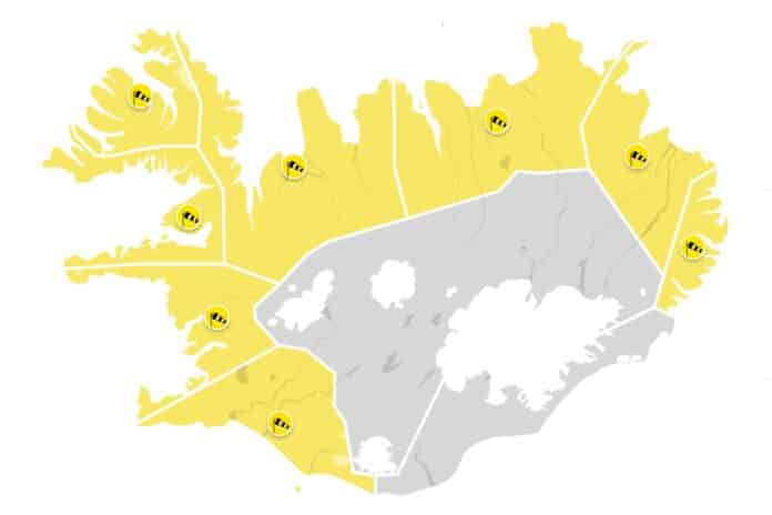 Veðurstofan hefur gefið út gula viðvörun sem gildir fyrir Suðurland frá kl. 14 í dag og fram til kl. 22 í kvöld.