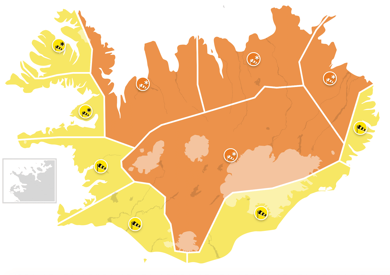 Veðurstofan hefur gefið út gula viðvörun fyrir Suðurland sem gildir frá klukkan 14 á sunnudag og fram til klukkan 4 á mánudagsmorgun.