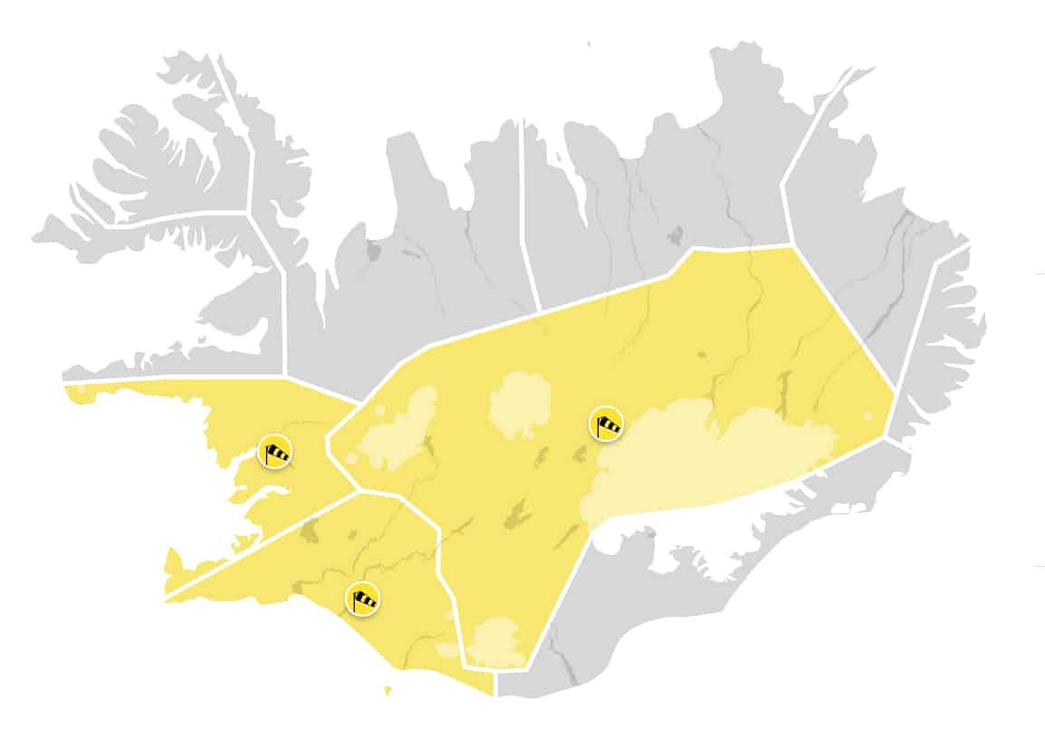 Veðurstofan hefur gefið út gula viðvörun sem gildir á Suðurlandi frá hádegi á föstudag, til klukkan átta á laugardagsmorgun.