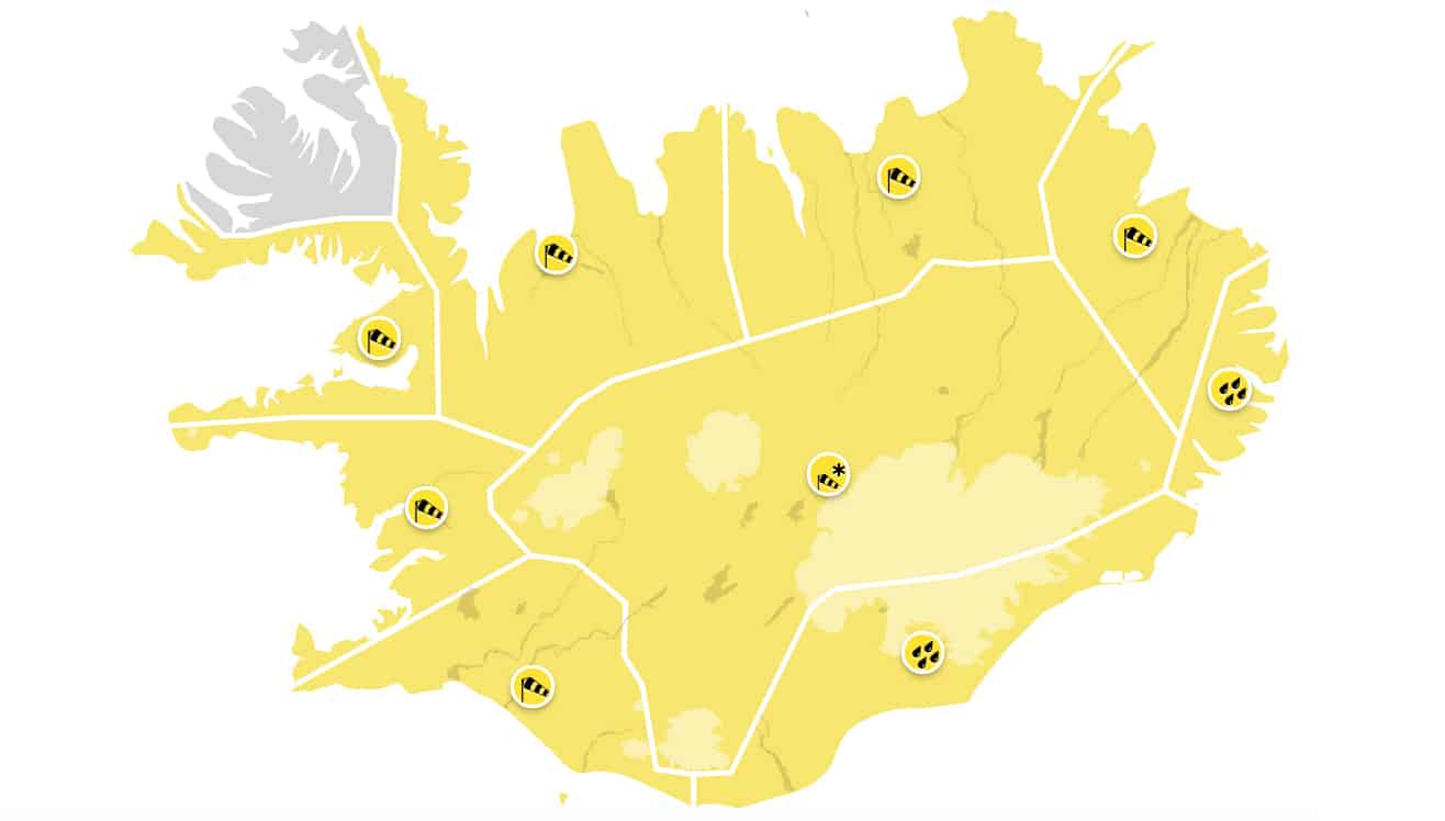 Veðurstofan hefur gefið út gula viðvörun sem gildir um allt land en útlit er fyrir suðaustan storm á morgun, sunnudag, með slagveðursrigningu. Mikil vosbúð verður til fjalla.