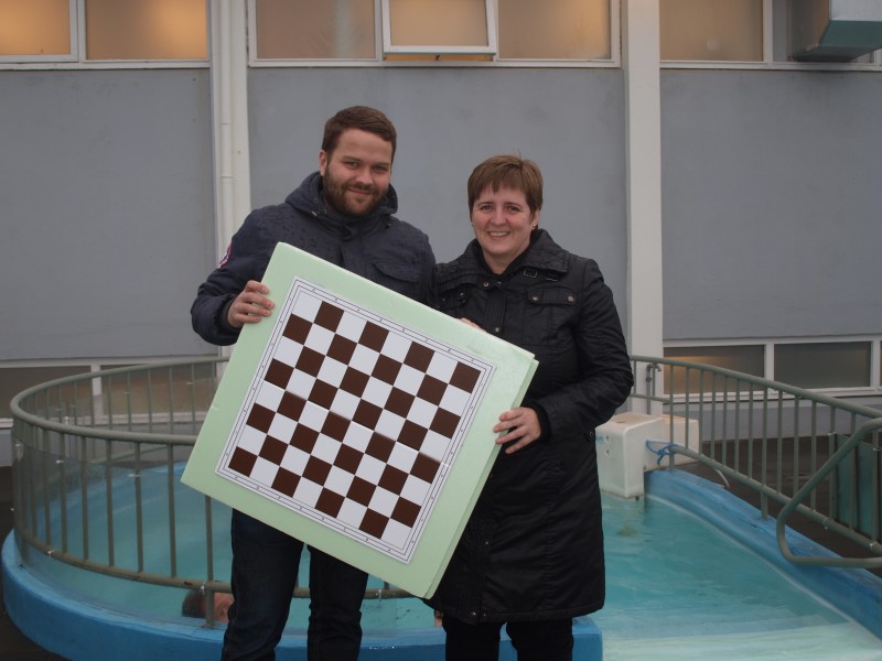 Þeir sem hafa áhuga á að tefla í laugunum þurfa einungis að biðja um aðgang að skákborðinu í afgreiðslunni.