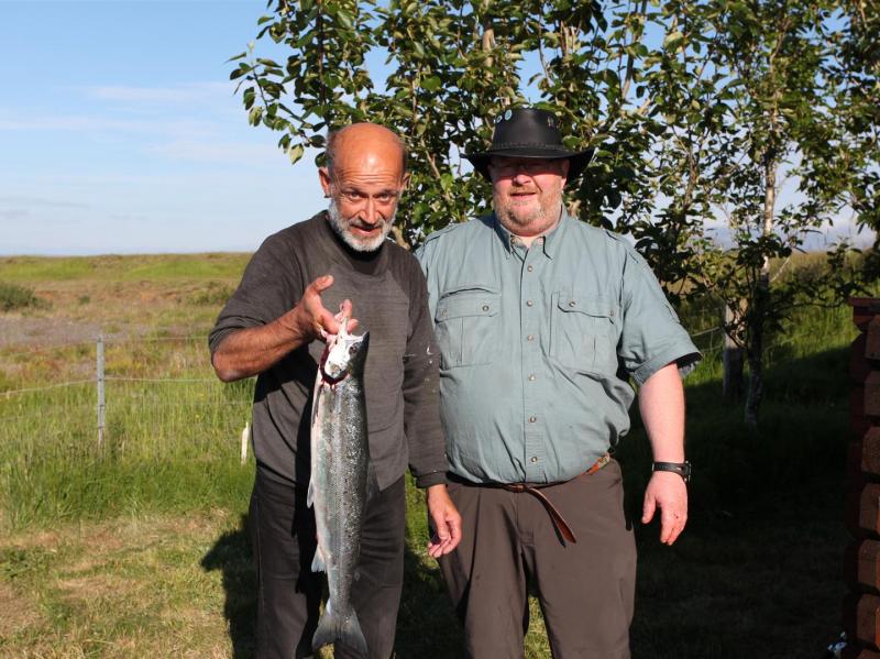 Í þriðja kasti nældi Hafþór í fjögurra punda nýgengna hrygnu og þar með fyrsta lax sumarsins í ánni. Laxinn fékkst á maðk, af pallinum í Víkinni. Þetta var maríulax Hafþórs og var hann að vonum ánægður með fenginn.