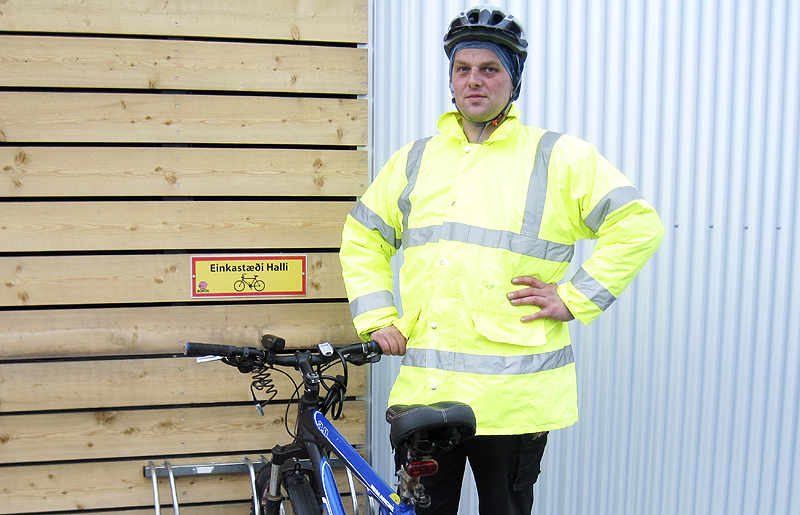 Halli fékk merkt einkastæði fyrir utan nýju verslunina en hann hjólar í vinnuna á hverjum degi.
