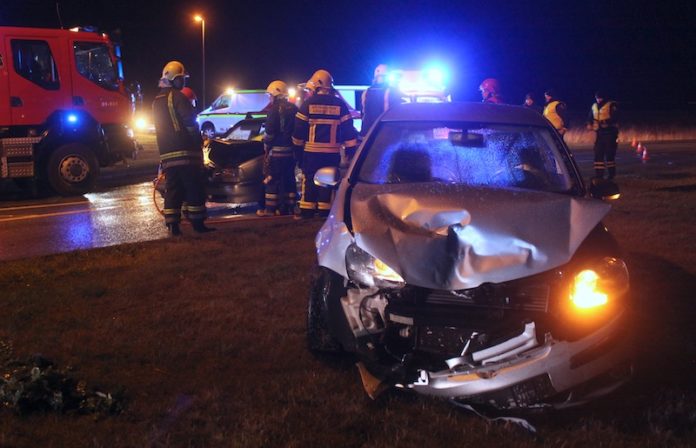 Samkvæmt upplýsingum frá lögreglu voru tildrög slyssins með þeim hætti að öðrum bílnum var ekið af Suðurhólunum út á Eyraveginn í veg fyrir hinn bílinn sem var á leið inn í bæinn.