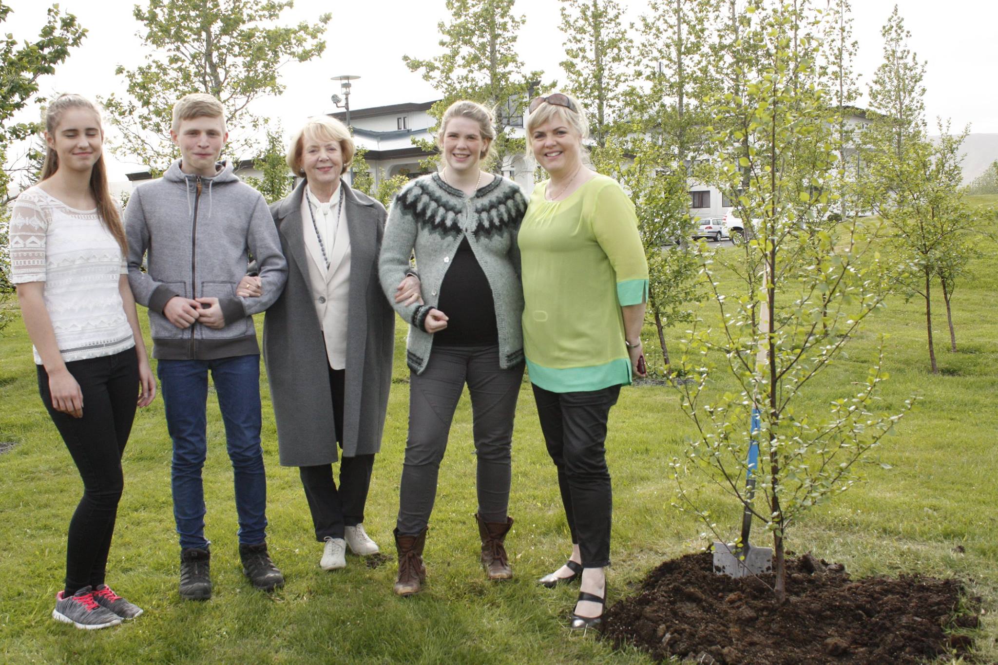 Frú Vigdís Finnbogadóttir gróðursetti fyrstu trén í Vigdísarlundi á föstudaginn en þá var lundurinn afhjúpaður í Hveragerði, henni til heiðurs.