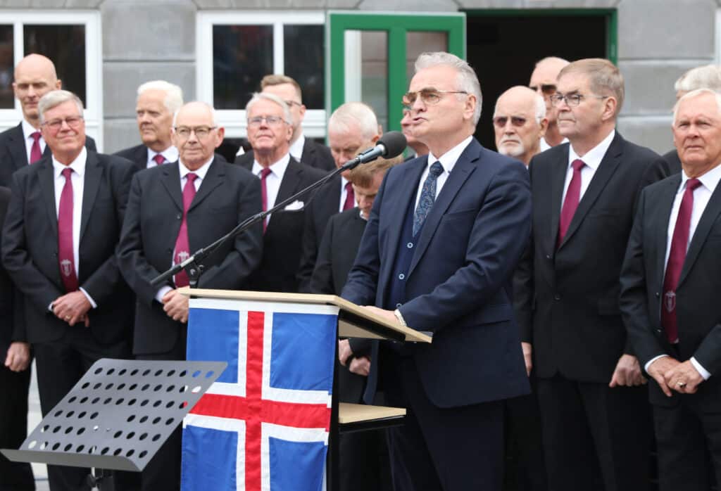 Lúðrasveit Selfoss spilaði fyrir gesti í miðbænum áður en Karlakór Selfoss söng inn samkomuna. Guðni, Fjóla Kristinsdóttir bæjarstjóri og Ólafur Ragnar Grímsson, fyrrverandi forseti Íslands, fluttu ávörp áður en stórtenórinn Kristján Jóhannsson söng Hraustir menn ásamt Karlakór Selfoss.