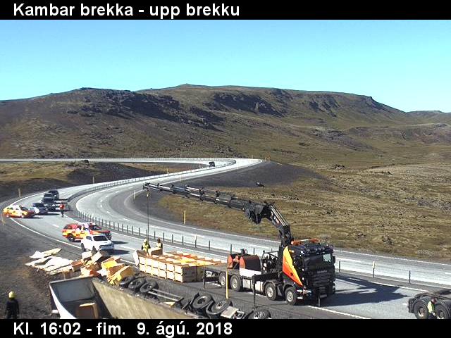 Hellisheiði er lokuð. Vesturleiðin vegna vegaframkvæmda en austurleiðin þar sem verið er að koma vöruflutningabifreið af vettvangi eftir umferðaróhapp sem varð í gær.