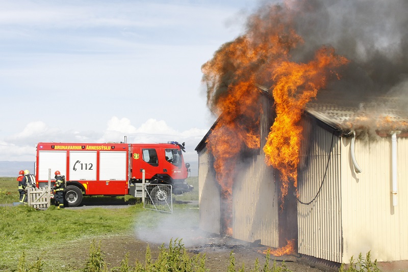 Vegfarendur urðu eldsins varir rétt fyrir klukkan ellefu en að sögn sjónarvotta magnaðist hann mjög hratt upp og þegar slökkviliðið kom á vettvang, átta mínútum eftir útkall var syðri endi hússins alelda.
