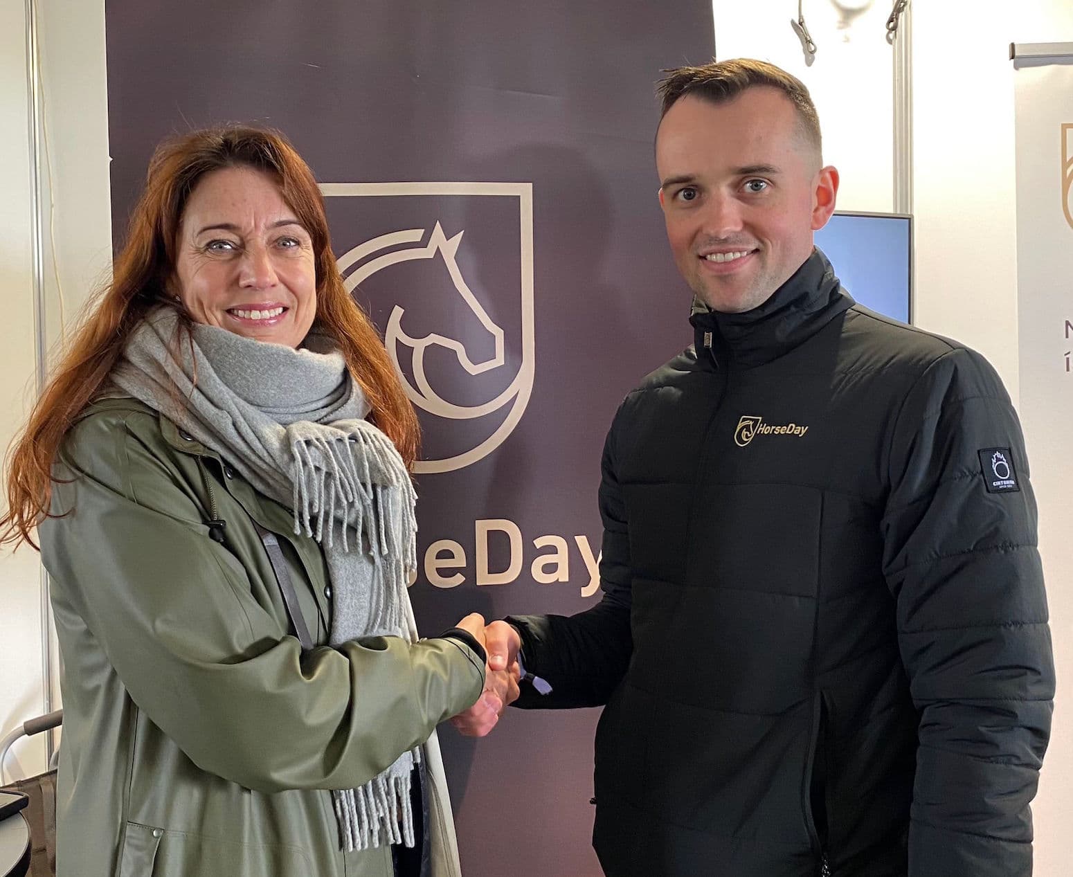 Hólmfríður Sveinsdóttir, rektor Háskólans á Hólum og Oddur Ólafsson, framkvæmdastjóri HorseDay ehf, innsigluðu samstarfið á landsmóti hestamanna í liðinni viku.