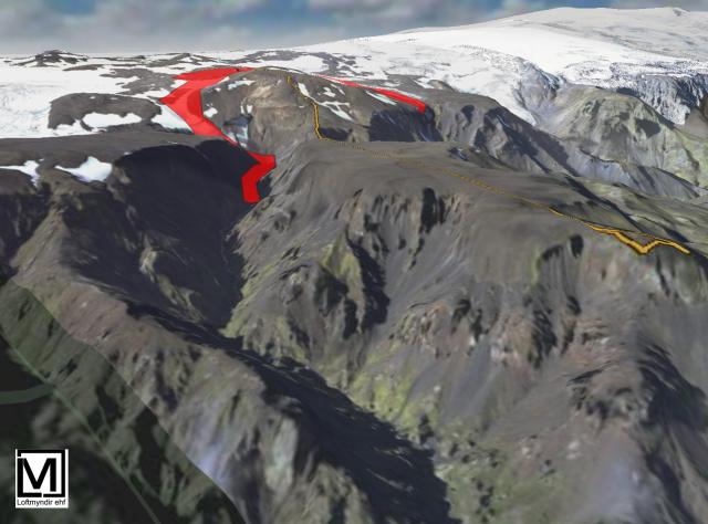 Hraun var komið niður í Hvannárgil eftir hádegi í dag og fylgdu því talsverðir gufustrókar og litlar hlaupskvettur í Hvanná í nótt og í morgun. Nú er hraunið hætt að renna niður í Hvannárgil og er aftur farið að renna í Hrunagil og koma aðal mekkirnir þaðan.