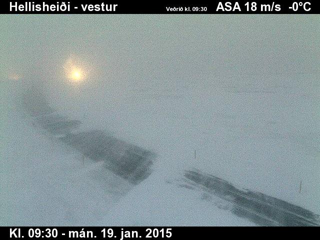 Hríðarveður er til hádegis á Hellisheiði og skafrenningur við þessar aðstæður á flestum fjallvegum landsins. Um leið og hlánar á láglendi er hætt við að flughált verði á mörgum vegum þar sem þjappaður snjór er fyrir.
