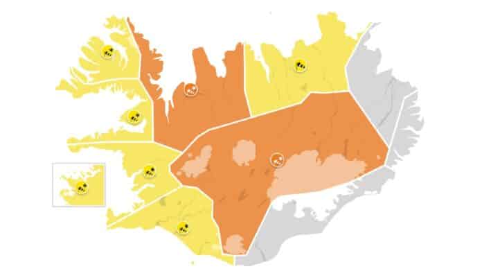 Einnig hefur verið gefin út gul viðvörun fyrir morgundaginn, sem gildir frá hádegi á fimmtudag þar sem búast má við 15-23 m/sek og mjög litlu skyggni í éljum.