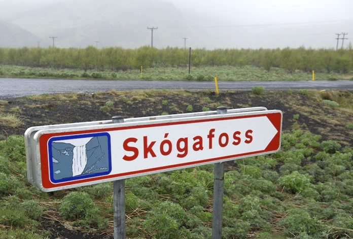. . . fær Rangárþing eystra og Vegagerðin sem nú hefur komið upp nýjum skiltum sem vísa á Skógafoss.