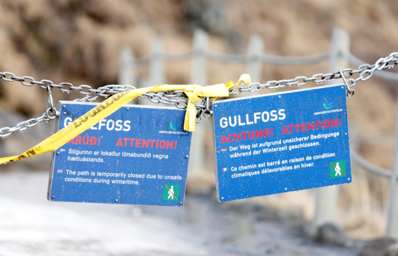 Fjölmargir ferðamenn sem hafa farið að Gullfossi í vetur hafa hunsað lokun og gulan borða lögreglunnar þar sem bannað er að fara niður stíginn vegna hálku og annarra atriða sem snúa að öryggi fólks.