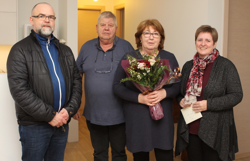 Ásta Stefánsdóttir, framkvæmdastjóri Árborgar og Kjartan Björnsson, forseti bæjarstjórnar, heimsóttu Báru og Stefán á nýja heimilið sitt í Gráhellu á Selfossi í kvöld, buðu þau velkomin í sveitarfélagið á nýjan leik og færðu þeim blómvönd.