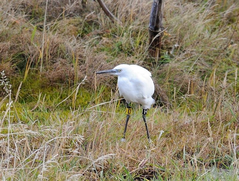 Bjarthegrinn (l. Egretta garzetta) hefur sést sjaldnar en sextíu sinnum hér á landi en þar af hafa tíu fuglar sést í ár. Fuglarnir voru í góðu yfirlæti við Höfðabrekkutjarnirnar en það sem vakti athygli Þóris var að annar fuglinn var merktur og höfðu þær merkingar verið settar á hann sem unga í Galway á Írlandi þann 4. júní síðastliðinn.
