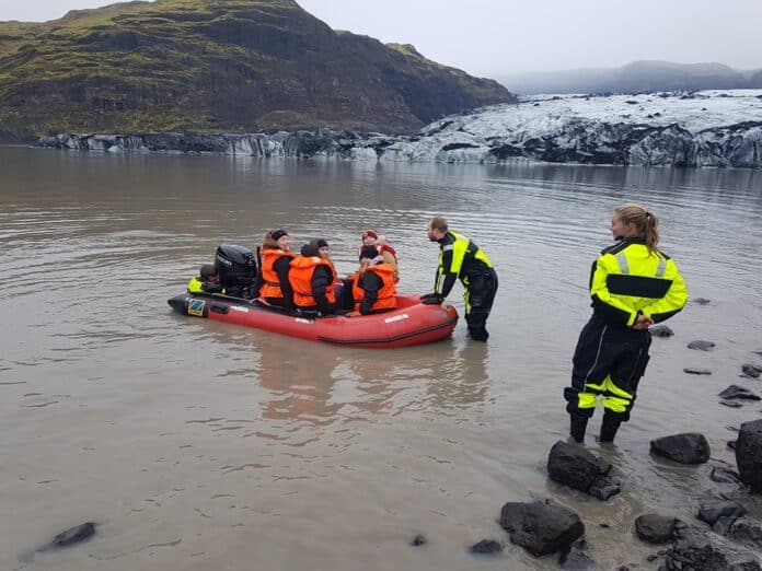 Í för með hópnum í gær slóst Sigrún Stefánsdóttir, dósent við Háskólann á Akureyri ásamt norrænum blaðamönnum. Jón Stefánsson fyrrum verkefnastjóri Grænfánans við Hvolsskóla var einnig með í för en hann hefur verið við mælingarnar frá upphafi. Venju samkvæmt aðstoðaði Björgunarsveitin Dagrenning við verkið.